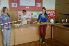 W kwietniu br. uczniowie klasy VI realizowali projekt pt. „Nasz Układ Słoneczny”. Celem tego projektu było poszerzenie treści programowych z zakresu budowy wszechświata, poruszanych na lekcjach przyrody. Efektem końcowym było stworzenie modelu Układu Słonecznego i jego prezentacja na forum klasy. Wszyscy uczniowie wykazali się dużą pomysłowością a efekty ich pracy były zaskakujące.